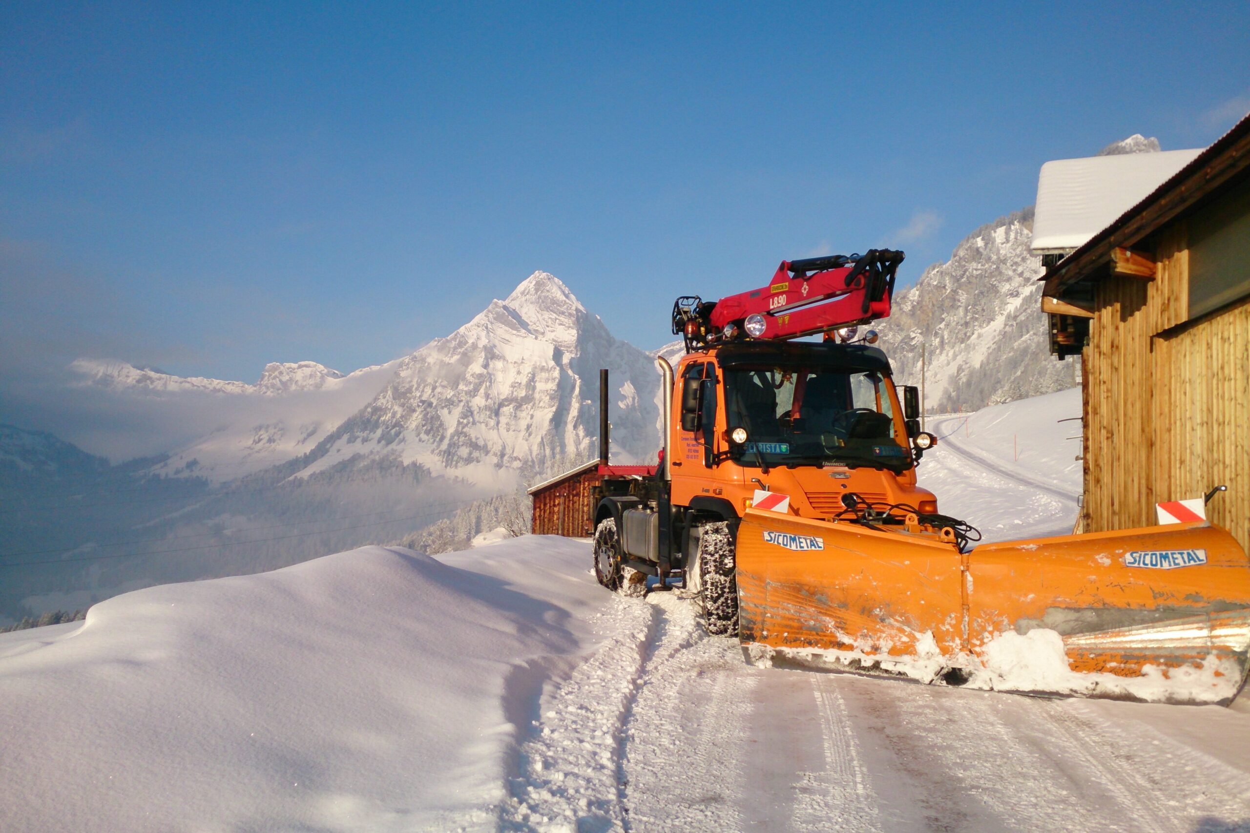 Unser Unimog Zugfahrzeug ist speziell auf den engen Berg- und Waldstrassen extrem wendig und flexibel.